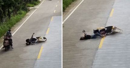 最狂三寶!邊騎邊滑手機邊撞車 360度翻滾倒地→繼續滑手機