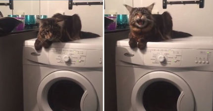 影/洗衣機睡覺結果開始「轟隆隆隆」 貓皇崩潰:拍什麼拍!不快救我下來QQ