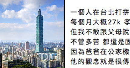 到台北工作月賺2萬7 「擠出1萬當孝親費」爸媽一句話害他飆淚