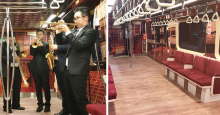 淡水捷運線變身「五星級」紅絨布座椅!紅色背景、昏黃燈光彷彿置身兩廳院!