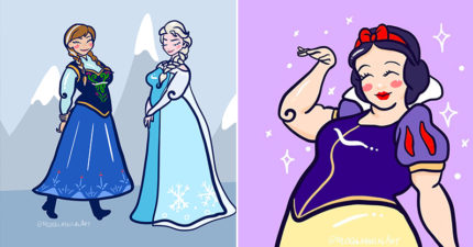 插画家画「加大版迪士尼公主」 茉莉小蛮腰变三层鲔鱼肚