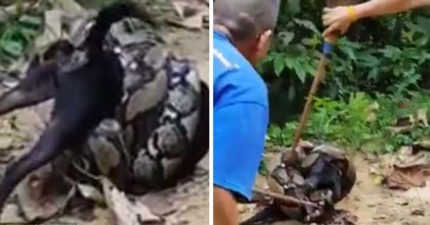 影/小黑狗被巨蟒綁死求生 村民拿木棍「挑開死亡之結」
