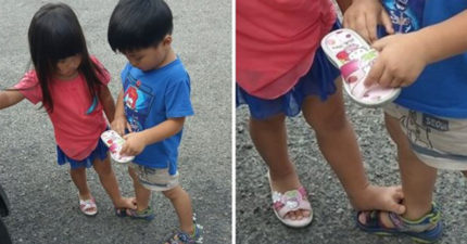 妹妹鞋子进石头 暖哥哥脱下清理怕妹脚脏「妳踩我!」