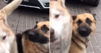 帥氣狼犬跟把拔討摸摸 下秒直接被「老哈閨蜜」飛踢:滾開!這是我的把拔