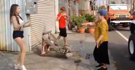 辣妹街邊跟阿嬤尬舞 阿嬤最後「放大絕」讓網笑翻:薑是老的辣