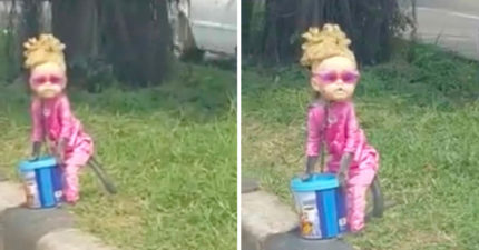 路邊出現金髮小女孩向路人乞討 「脖子被鐵鍊栓住」真面目讓人心碎