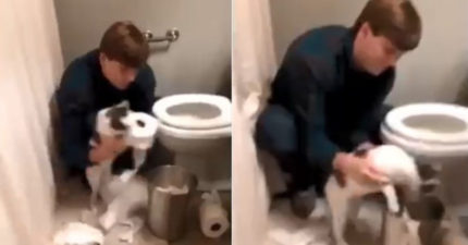 回家驚見廁所下雪 貓皇被鏟屎官架著收垃圾「自己闖禍自己收拾」!
