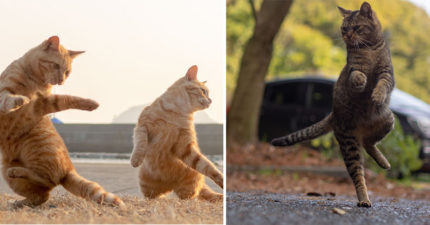 日本攝影師拍下浪喵私下愛好 兩腳一跳揮舞貓拳化身「功夫大師」:糟糕暴露身份了~