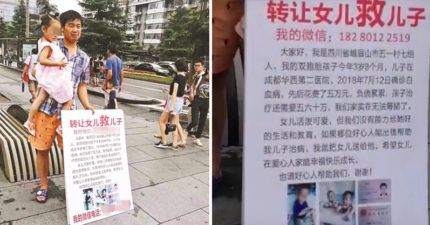 4歲兒患白血病沒錢醫 父抱女兒舉廣告牌「轉讓女兒救兒子」被罵翻:人口販賣?