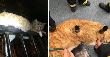 橘貓落地失誤硬生生「被欄杆刺穿2個洞」無法動彈,超勇敢不哭叫還「發出呼嚕聲」…