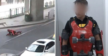 影/男子穿「鋼鐵人滑輪服」趴高速公路飆速 駕駛全看傻:是想學成龍?