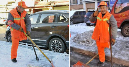 「聾啞獨腿清潔工」邊拄拐杖邊掃街,日曬雨淋12年「沒休過一天假」!生日日期讓他不得不這麼做!