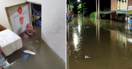 淹水150cm!嘉義玩命光頭「屋內游泳苦笑」 公開退水照證明:外面水痕都比我高