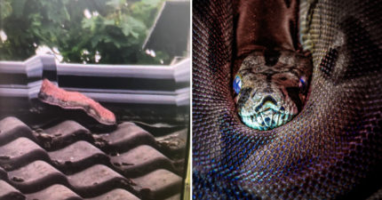 「巨肥红蛇」窜出屋顶探头 她急求救!警消架梯子爬上去愣了