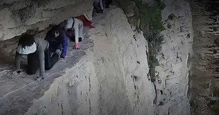 遊客沒綁安全措施「狗爬式過懸崖」 玩命過程邊喊:爬過了就沒事