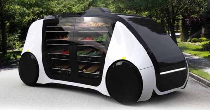 全球第一台「會自己趴趴走的超市」!AI無人電動車能「把新鮮食物直接送到門口」任你選購!