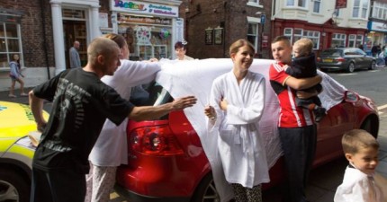 一對楚楚可憐的母子在賣場旁乞討,在得到路人的捐款後,他們轉身就進了賓士。