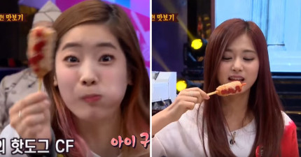 這個節目要藝人輪流吃熱狗,然後演出很滿足的表情。當該到子瑜時…太爆炸可愛了!