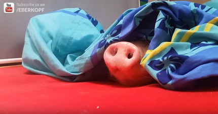 這隻小豬豬每天睡到超晚都不肯起床,但當你把他最愛的東西放靠近他豬鼻子時發生的「微動作」會可愛到你以後不捨得吃…