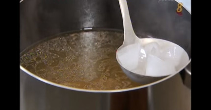 我原本不相信他能輕鬆吸掉雞湯上的油,但他把「裝滿冰塊的湯杓」放下去後我完全後悔以前沒這麼做!