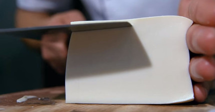 他在豆腐上下第一刀時看起來很普通,等他將豆腐丟入水中…我才知道這世界上真的有食神!
