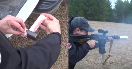 他先在M16步槍上纏上培根,在連發瘋狂射擊後…你口水也要滴下來了。