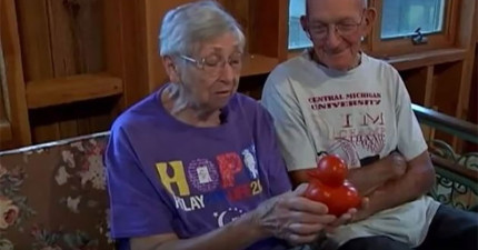 這對老夫婦起床時看到了一個長得超像鴨子的番茄,換個角度看這根本就是長得像番茄的鴨子啊!