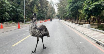 影/信義區驚見「鴕鳥狂奔遛主人」 在地人笑揭原因