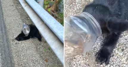 小黑趴路邊「頭被塑膠罐卡住」 她熱心一拔!正臉讓網友融化了