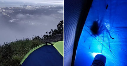 露營驚見帳篷外出現「長腳巨怪」 手電筒一照不得了