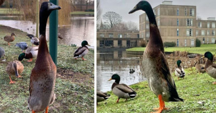鴨界姚明!「人形巨鴨」現身大學校園 學生PO餵食影片愣:是真的