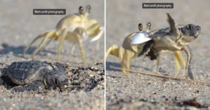 螃蟹在沙灘「找小海龜玩飛高高」 下秒冷血現實不忍直視