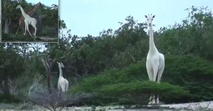 非洲驚現「2隻超罕見純白長頸鹿」!「全身雪白沒斑點」人類史上首次拍到!(影片)