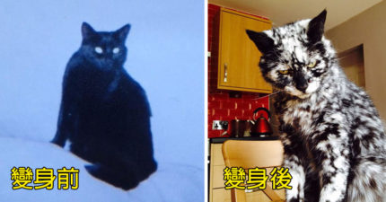 黑貓7歲時得皮膚病後變身「超猛黑白色」,19歲變身完畢「大理石猛獸」模樣超帥!