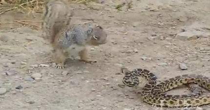餓壞的松鼠不自量力「挑戰蛇」,激戰下場讓人吃驚…