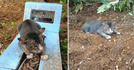 這隻心痛的貓咪花了「一整年」的時間,每天在過世主人墓前哭泣…