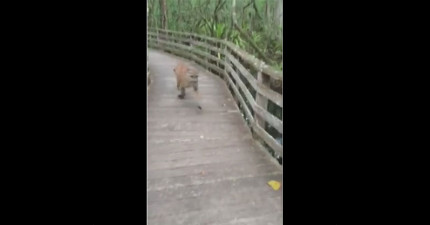 這女子在登山時意外碰到一隻兇猛的野生豹嚇死了,但下一秒他們居然爆笑同步了!