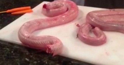 這條蛇的頭被砍掉、皮被剝掉、內臟全被移除,但接下來的「根本還活著攻擊人類」畫面真的把我嚇壞了!