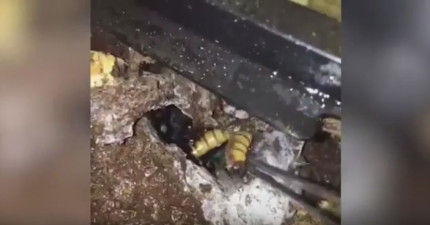 大家一開始都以為這是一座鳥巢,但當男子用樹枝撥了一下…救命啊啊啊誰來幫我放一把火!