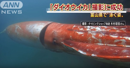 他們拍到4公尺長的巨大烏賊,看到人類在他旁邊遊的畫面真的讓我嚇壞了…