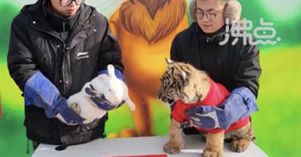 動物園舉行「虎兔交接」儀式 老虎下秒竟直咬小白兔