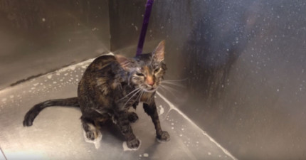 這隻貓咪真的受夠了洗澡,你可以清楚的聽到他說出2個字求饒!