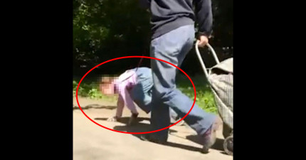 這個被媽媽像狗一樣溜的小女生用四肢爬,就像一隻狗一樣,看到其他人還會衝上去討飯吃。