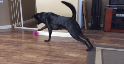 這隻狗狗認為木質地板是岩漿,後腳不能碰,所以陷入了人生最艱難的爆笑處境…