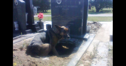 網友都以為「狗狗趴在墓地思念主人」而感動不已,後來卻發現令人超開心的真相!