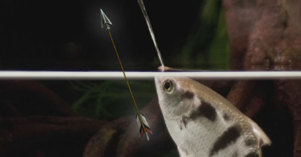 這條「弓箭手魚」從嘴裡會射出水弓箭把陸地上的動物擊落然後吃掉。