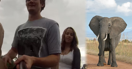 他在騎大象時自拍棒和相機手滑掉到地上,結果他就發現到大象是全世界最珍貴的動物!