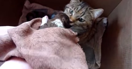 他們把狗寶寶帶給家裡貓咪看還擔心她會不喜歡,結果到0:48狗寶寶就已經被領養了。