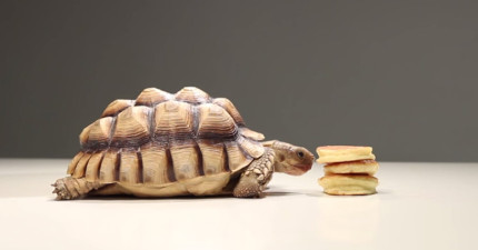 請注意!超可愛烏龜要第一次嘗試吃小鬆餅了!重複一次,超可愛烏龜要第一次嘗試小鬆餅了!