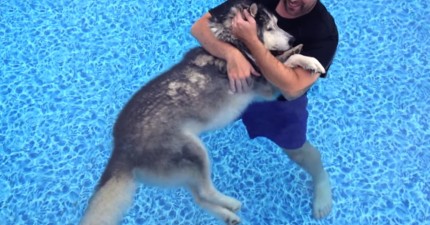 在他每天抱著年邁不能走路的老哈士奇游泳後,最不可思議的奇蹟就發生了。